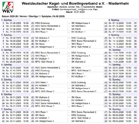 In der Saison 2025/26 stellt KV Wülfrath wieder 2 Mannschaften, die 1. spielt in der Oberliga und die 2. weiterhin in der Bezirksliga.