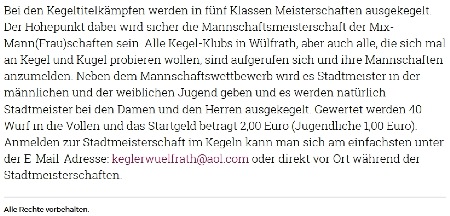 Kegeln Wülfraths Erste siegt klar 3:0 und ist vorzeitig Gruppensieger