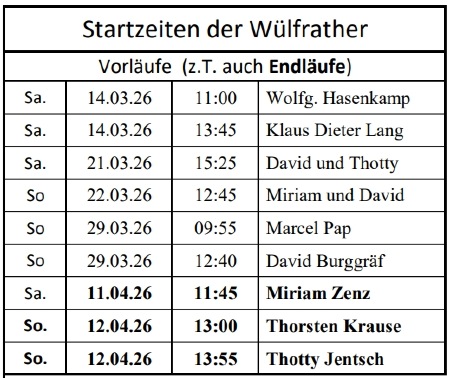 Startzeiten der Wülfrather (ohne Gewähr)