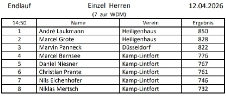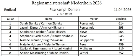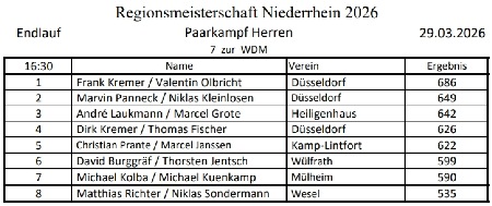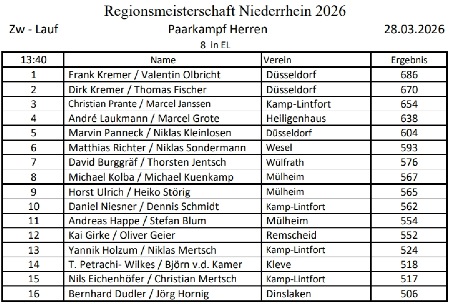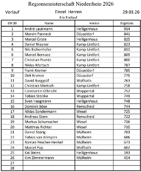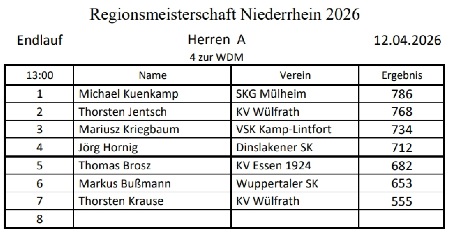 Teilnehmerliste der Niederrheinmeisterschaft und aktuelle Ergebnisse