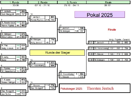 Anmerkung: als Neuerung wurde der Pokalsieger in diesem Jahr unter allen 4 Endspielteilnehmern einschliesslich der entsprechenden Vorgaben ausgetragen.