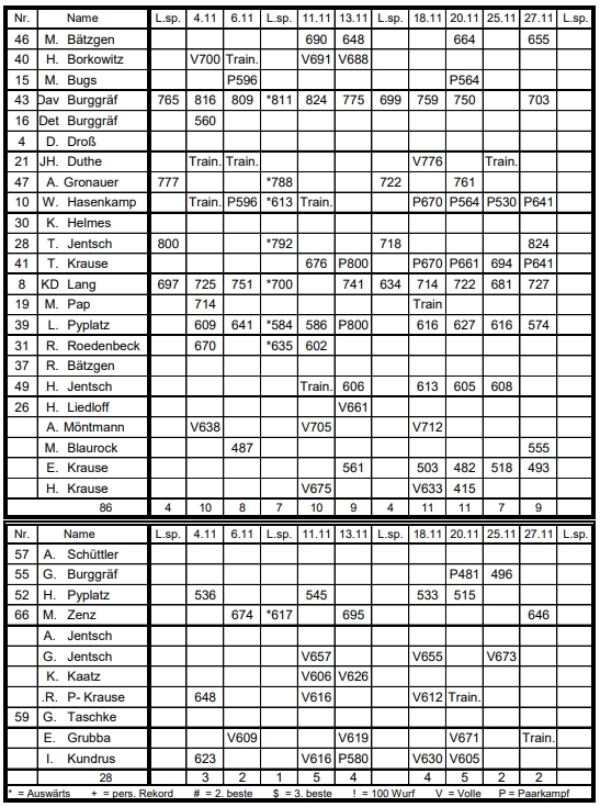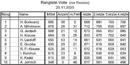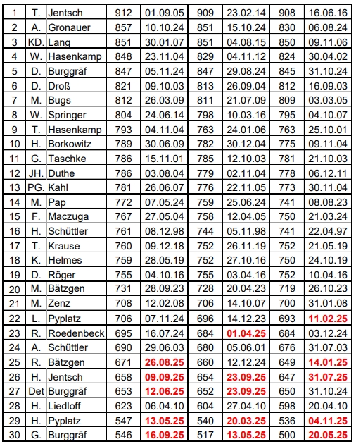 Bestenliste der Wülfrather Sportkegler (120 Wurf kombiniert) Die letzte Änderung der Bestenliste geschah am 04.11.2025