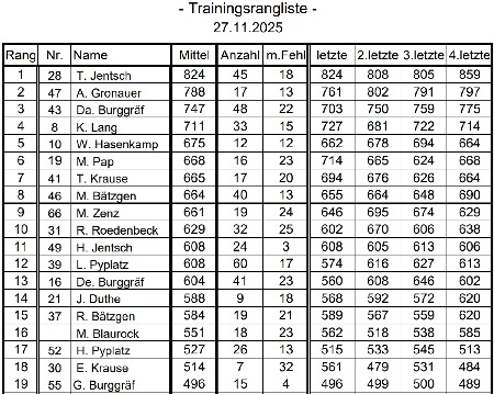 Trainingsergebnisse - Rangliste und Rekordzahlen
