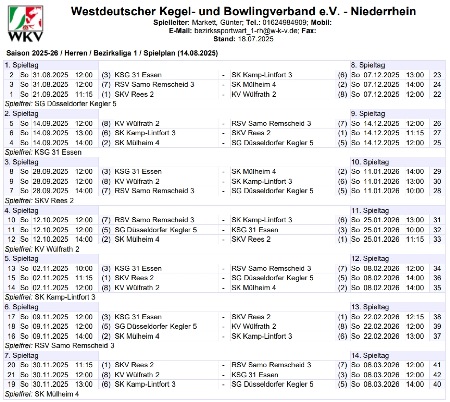 In der Saison 2025/26 stellt KV Wülfrath wieder 2 Mannschaften, die 1. spielt in der Oberliga und die 2. weiterhin in der Bezirksliga.