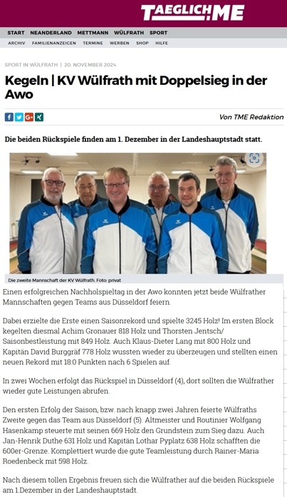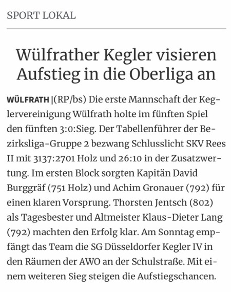 Kegeln Wülfraths Erste siegt klar 3:0 und ist vorzeitig Gruppensieger