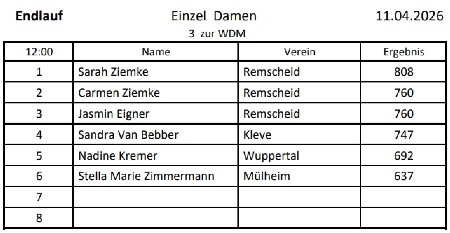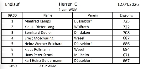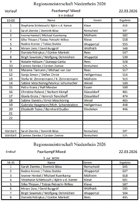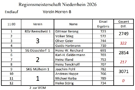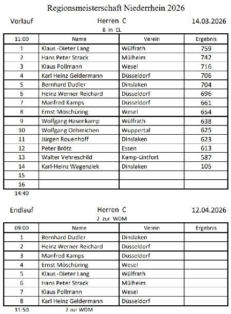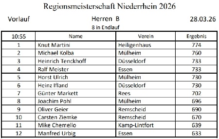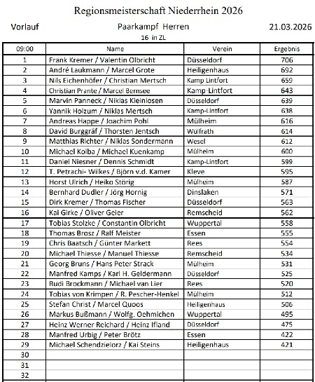 Teilnehmerliste der Niederrheinmeisterschaft und aktuelle Ergebnisse