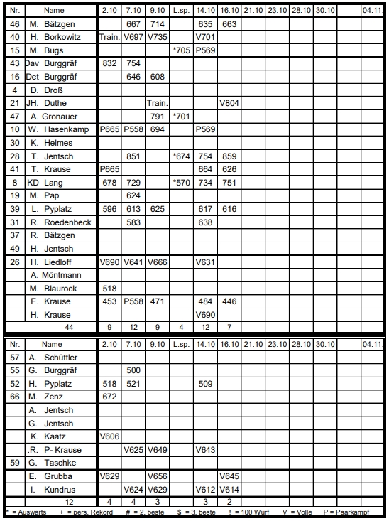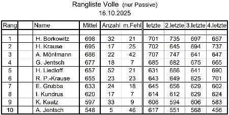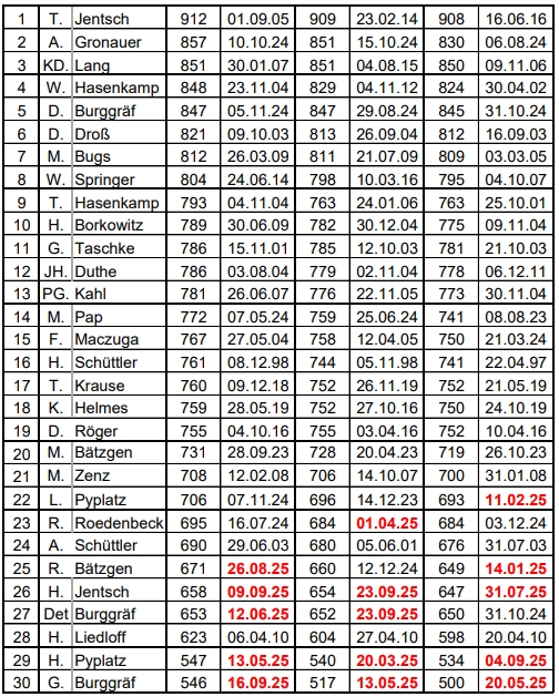 Bestenliste der Wülfrather Sportkegler (120 Wurf kombiniert) Die letzte Änderung der Bestenliste geschah am 23.09.2025