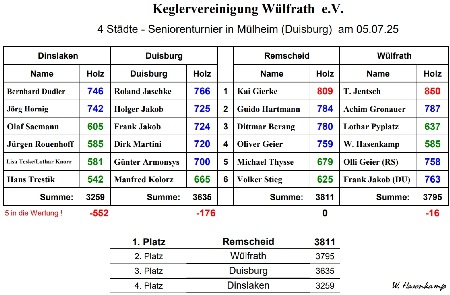 1. Platz Wülfrath 4514 2. Platz Remscheid 4273 3. Platz Dinslaken 4261 4. Platz Duisburg 4211