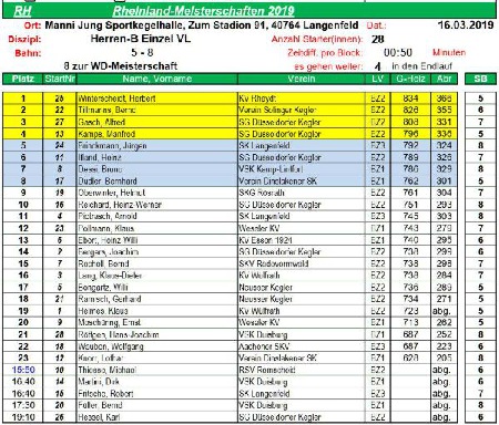 Damen: Herren: 1. Platz A. Schüttler 259 Holz 1. J. Duthe 303 Holz 2. " G. Burggräf 207 " 2. D. Burggräf 302 " 3. " C. Bätzgen 204 " 3. K. Lang 295 " 4. " R. Lange 191 "