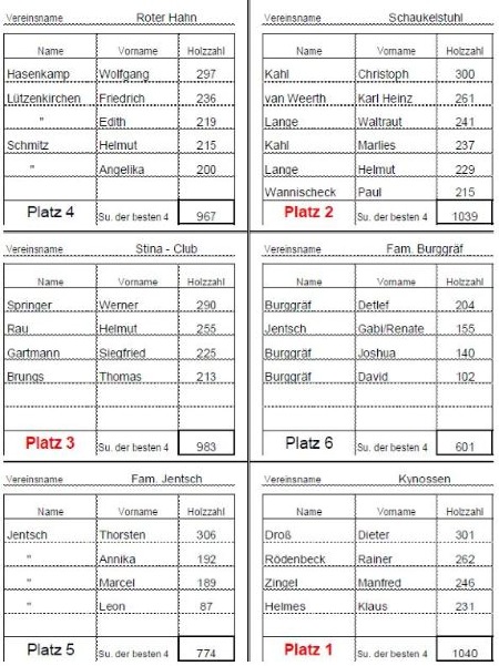 2. wird Wolfg. Hasenkamp mit                          794 Holz (einschl. Vorgabe)